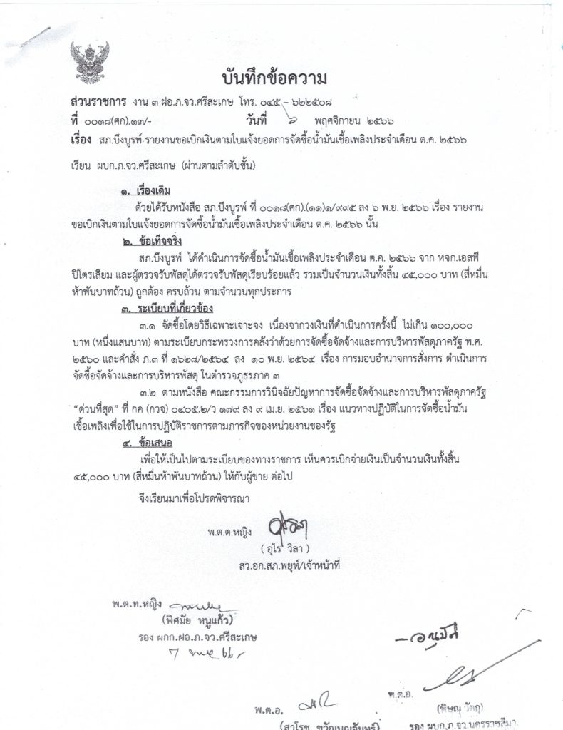 ข่าวการจัดซื้อน้ำมันเชื้อเพลิง เดือน ตุลาคม 2566 15 กันยายน 2565 โดย admin / ข่าวจัดซื้อจัดจ้าง,งานธุรการและกำลังพล การรายงานขอเบิกเงินตามใบแจ้งยอดการจัดซื้อน้ำมันเชื้อเพลิงประจำเดือน ตุลาคม 2566 จำนวนยอดขอเบิก 45,000 บาท (สี่หมื่นห้าพันบ Facebook iconFacebookTwitter iconTwitterLINE iconLine