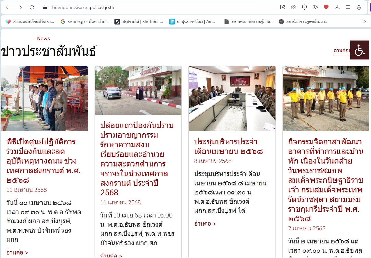 ข่าวการประชาสัมพันธ์ข้อมูลข่าวสารของสถานีตำรวจภูธรบึงบูรพ์ การประชาสัมพันธ์ทางเวปไซต์ของสถานี